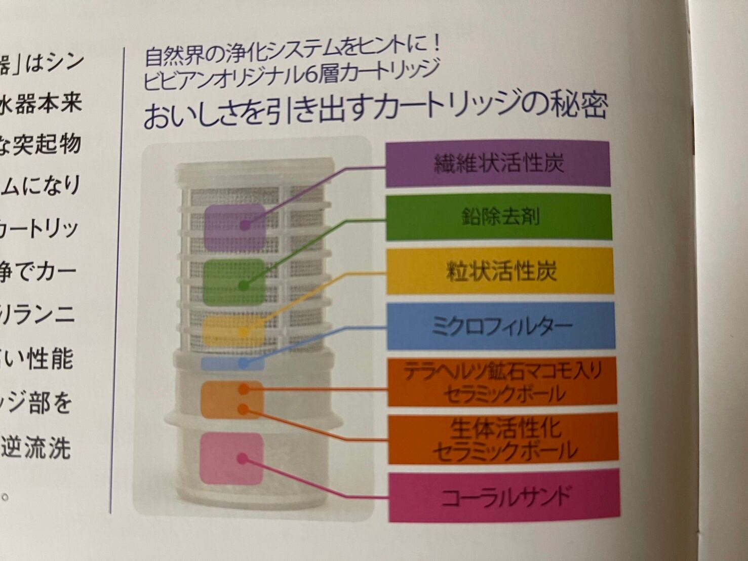 強力なテラヘルツ波を発生させる3種類のテラヘルツ鉱石に植物由来の素材『マコモ』を配合したセラミックボールの層、そして沖縄の天然サンゴ礁(コーラルサンド)の層など、ビビアン独自の研究と開発によって作られたフィルターは他の追随を許しません。