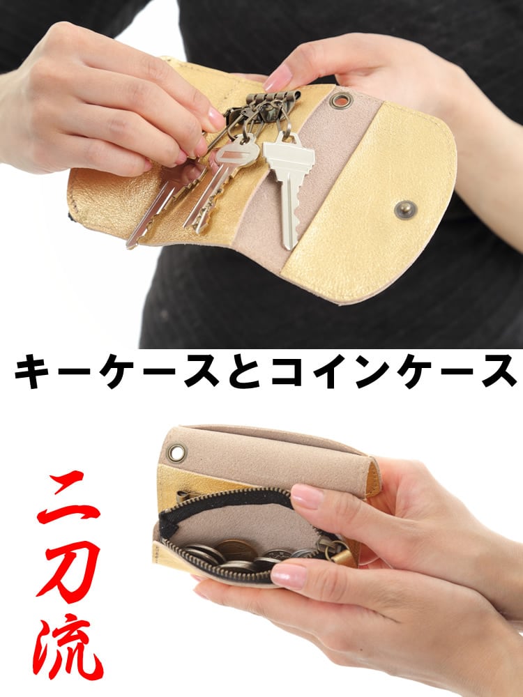 商品名:牛革 ゴールド キーケース&小銭入れ
